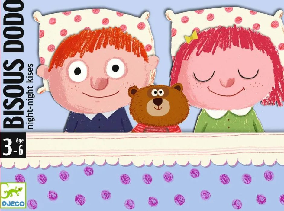 Un juego de ritual antes de irse a la cama para niñas y niños pequeños a partir de 3 años. Antes de ir a dormir, colocamos al personaje que elijamos (niño o niña) en el fondo de la caja, que se convierte en una cama con su pequeño colchón. Para poder dormir, hay que encontrar la almohada, la manta y el edredón entre las cartas. La partida termina cuando se encuentran estas 3 cartas. A continuación, se realizan las acciones de las cartas sacadas correspondientes durante el juego: abrazos, cosquillas, besos, cancioncitas…