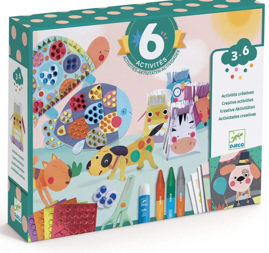 Horas de actividades manuales para descubrir diferentes técnicas de creación. Todos los accesorios están incluidos para que el niño realice cada actividad al ritmo que dicten sus ganas y su curiosidad. El folleto que detalla paso a paso cada actividad lo guiará en sus creaciones.