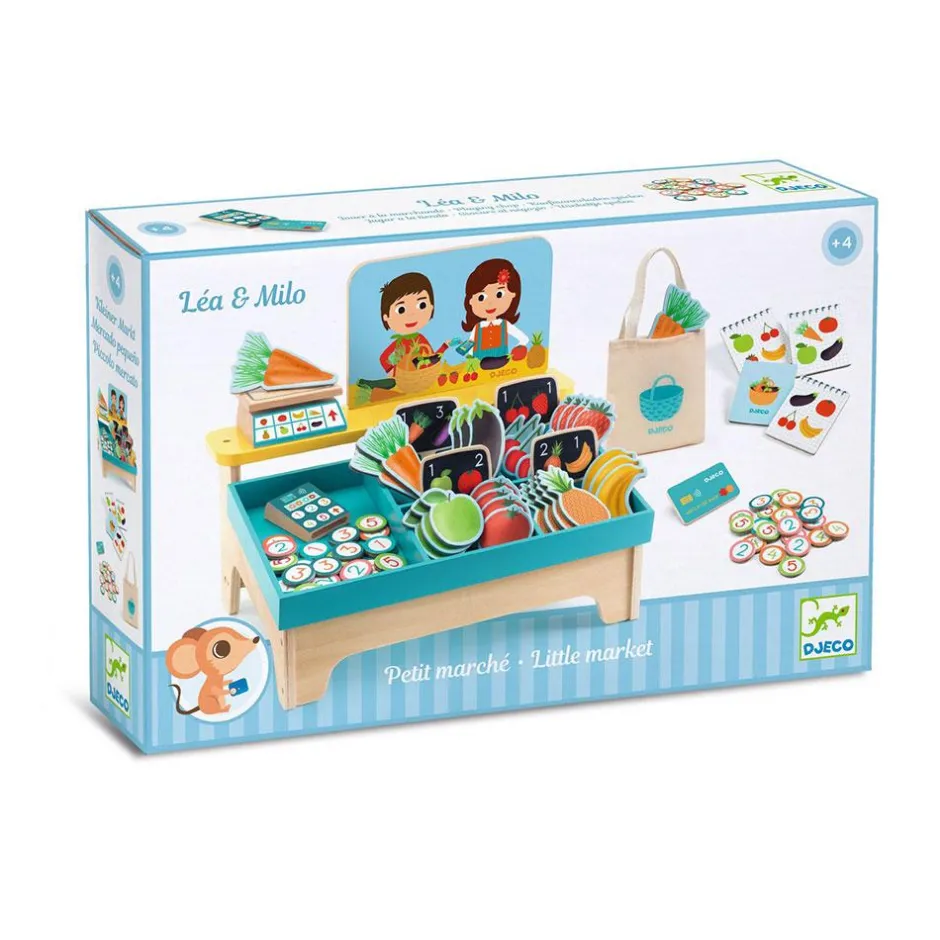 Conviértete en el dueño del puesto de frutas y verduras de nuestro mercado imaginario, ¡y vende a tus clientes tus mejores piezas! O haz de cliente y llévate a casa las frutas más deliciosas sin gastarte todo el dinero, ¡invita a tus amigos a jugar a las tiendas!