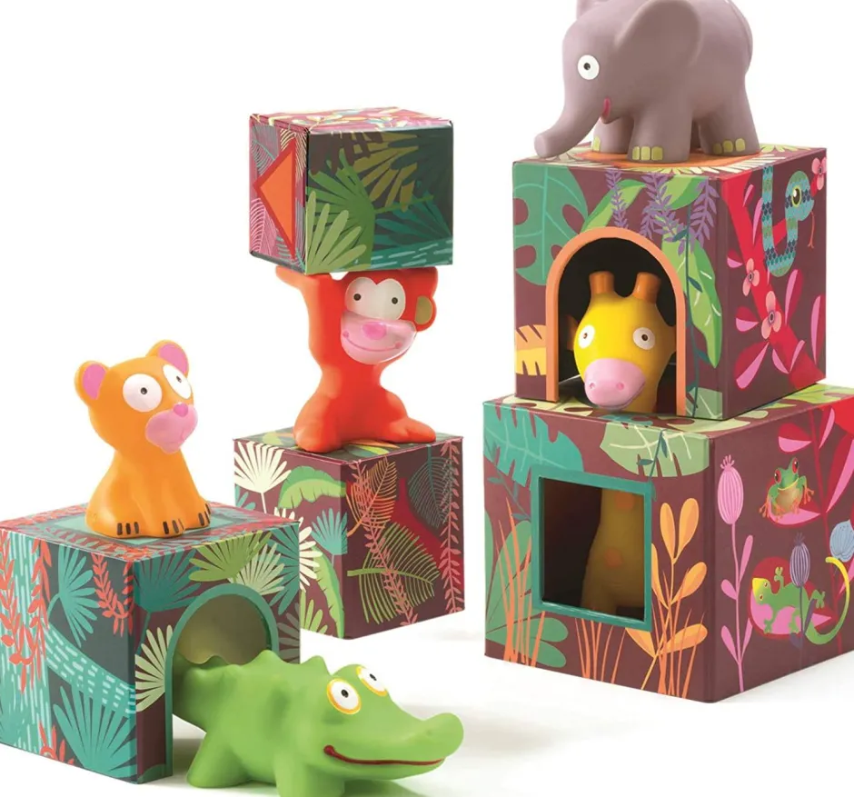 Descubre uno de nuestros juegos más completos para los peques de la casa. Apilan, juegan con los animales, identifican la casa de cada animal, los nombran … y un sinfín de juegos más.
