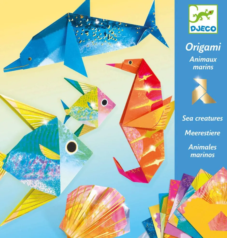 ¡Rumbo al fondo del mar con este estuche de origami lleno de animales resplandecientes! Caballitos de mar, delfines, peces y conchas con un toque dorado. Siguiendo las explicaciones del cuadernillo y las marcas trazadas, el niño pliega el papel hasta realizar 24 animales marinos de papel. Fácil: las líneas de plegado están marcadas en las hojas. ¡Zonas doradas para iluminar las ilustraciones!