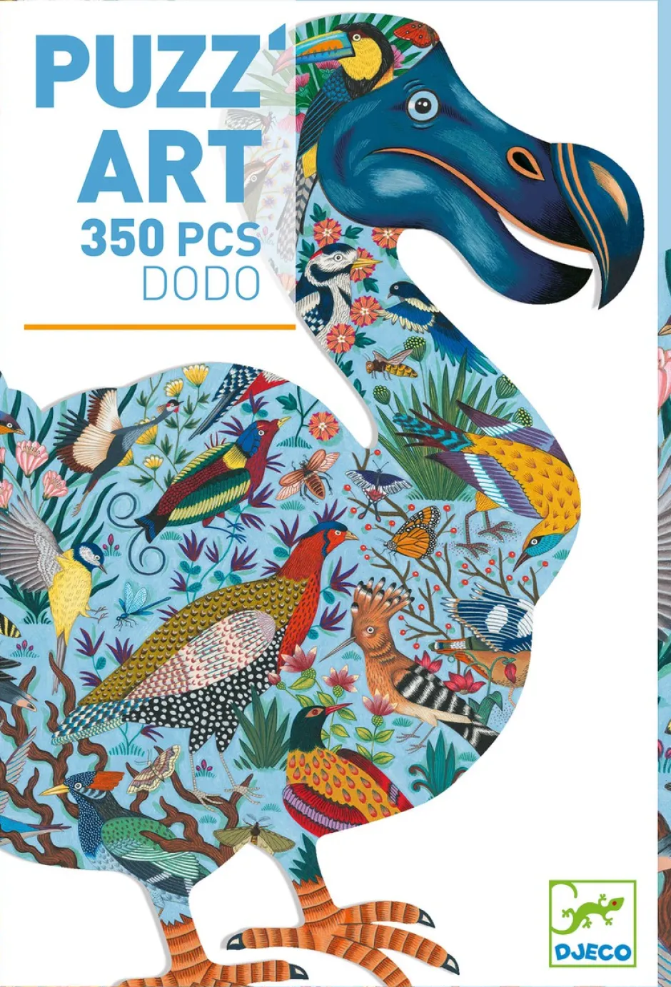 Puzz’Art Dodo es un puzle de 350 piezas. Gracias a su formato inédito, sin esquinas ni bordes, se derriban los códigos del arte del puzle. A través de esta gran silueta perforada, el niño descubre un pulpo en el que pulula un mundo imaginario. .