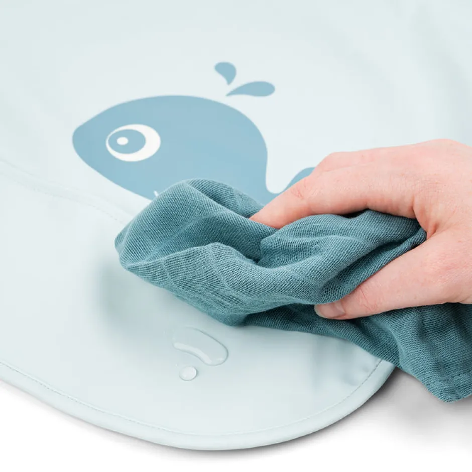 Babero de silicona que protegerá a tu pequeño a la hora de comer o cuando decida ser creativo con pinturas o plastilina. Con un bolsillo recogemigas para evitar que caiga la comida a la ropa.