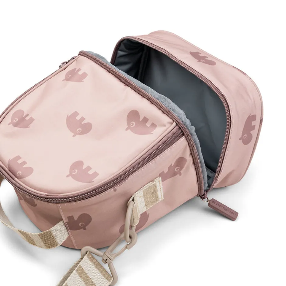 La bolsa tiene dos compartimentos y una correa ajustable para el hombro para adaptarse perfectamente a los peques. La bolsa es fácil de abrir para un niño cuando se utilizan las dos cremalleras.