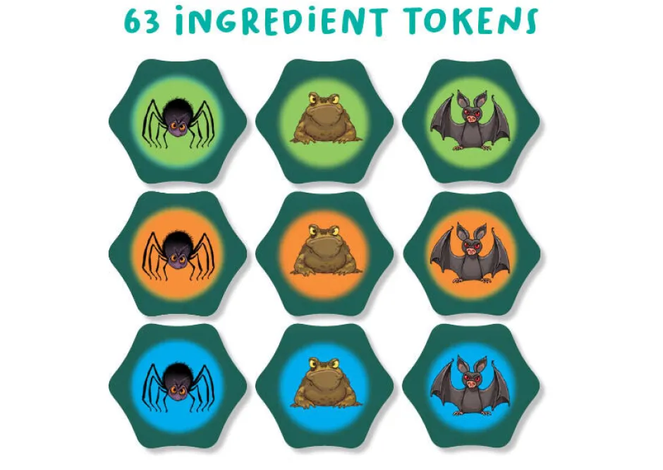 Abracada Broom es un juego de mesa de memoria adaptable y toma de decisiones con ingredientes mágicos, poderosas pociones y escobas voladoras.