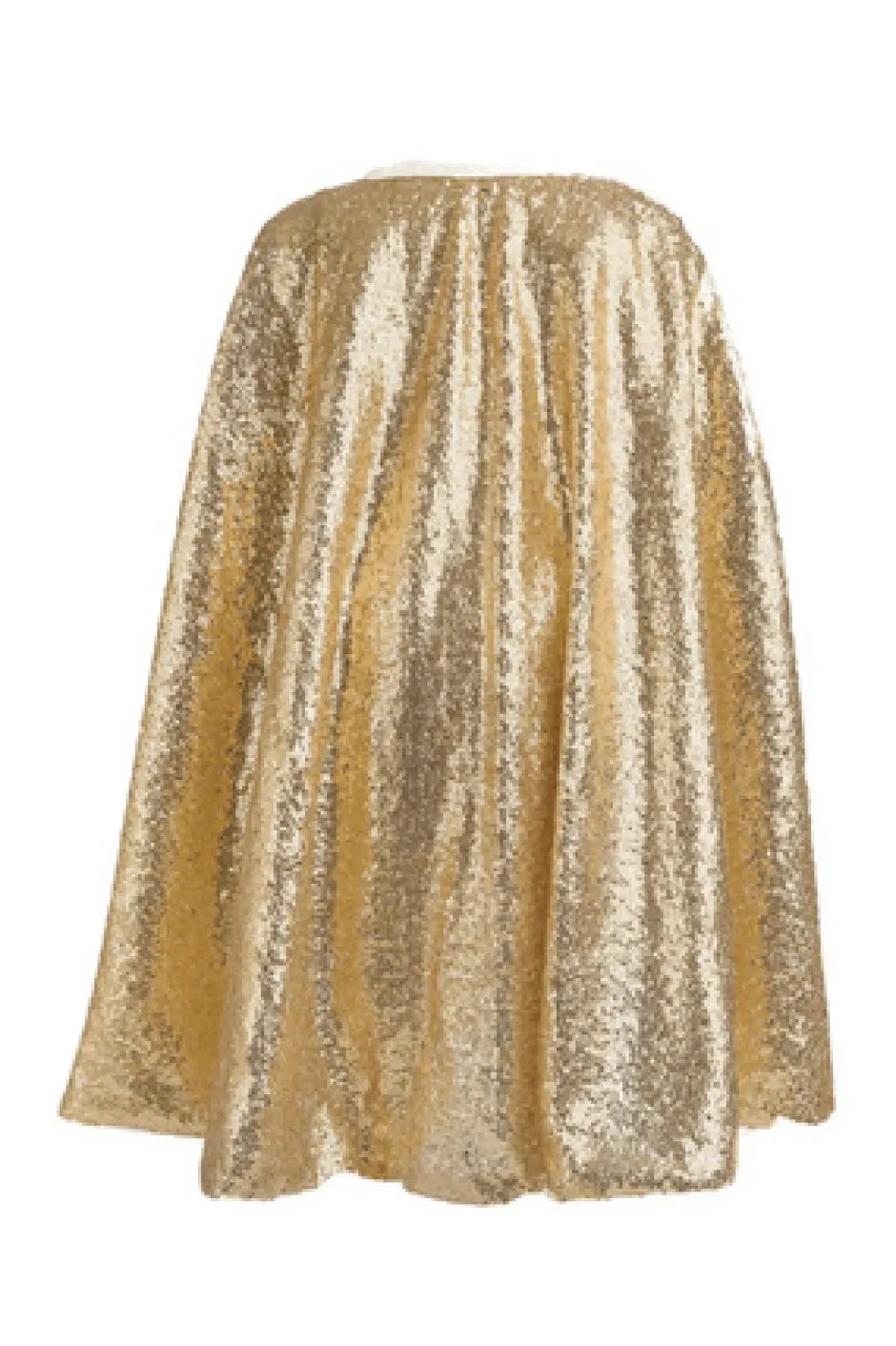 Nuestra capa está hecha con cientos de lentejuelas doradas y forrada con malla suave. La capa tiene un hermoso lazo dorado en el cierre del cuello con velcro. ¡Esta capa brillará cuando te muevas y es perfecta para los pequeños a los que les encanta jugar a disfrazarse!