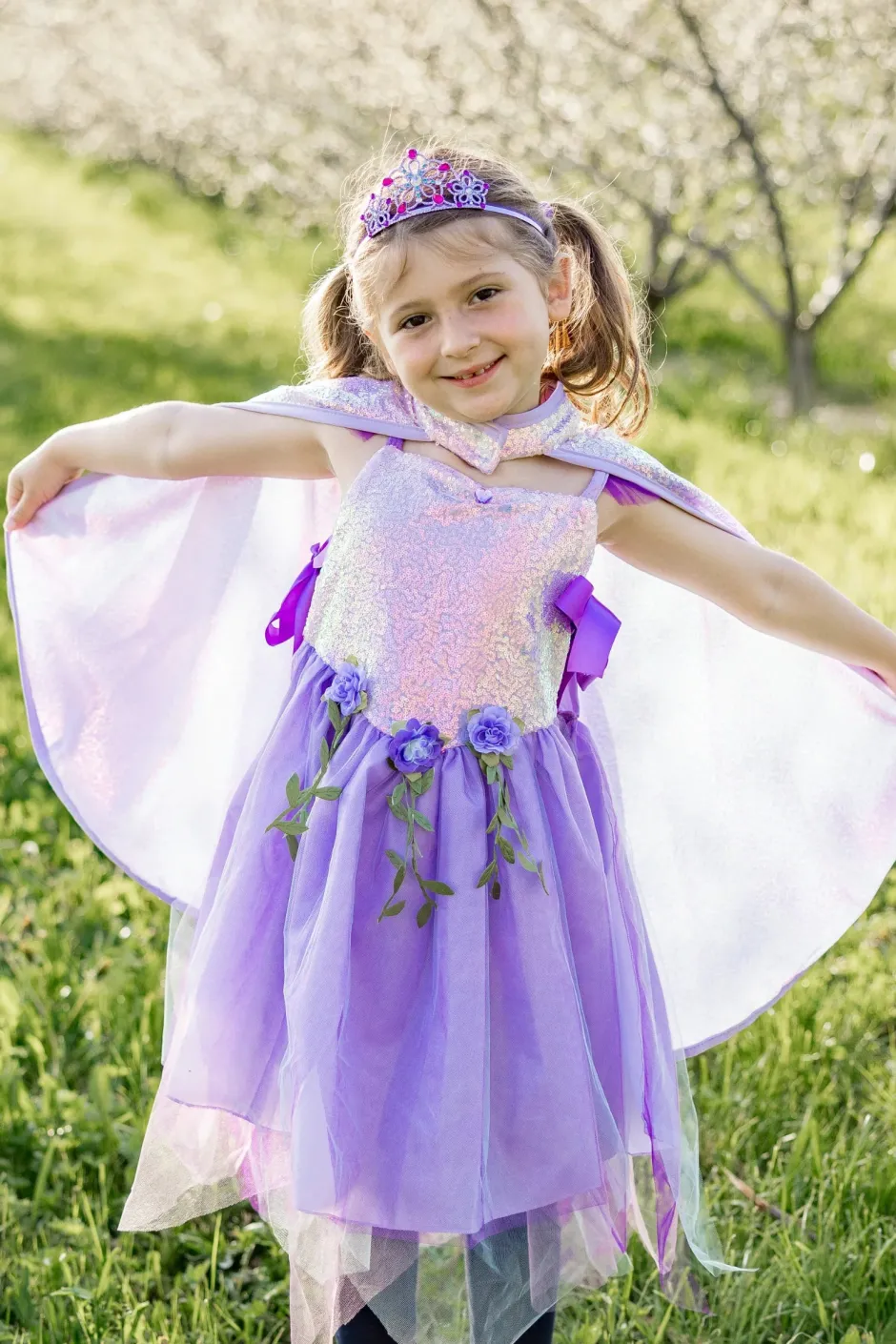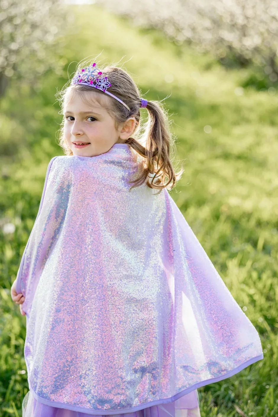 Capa repleta de lentejuelas lilas que brillan con cada giro, creando un efecto mágico y deslumbrante. Su cierre de velcro es práctico y ligera como una pluma, ideal para jugar.