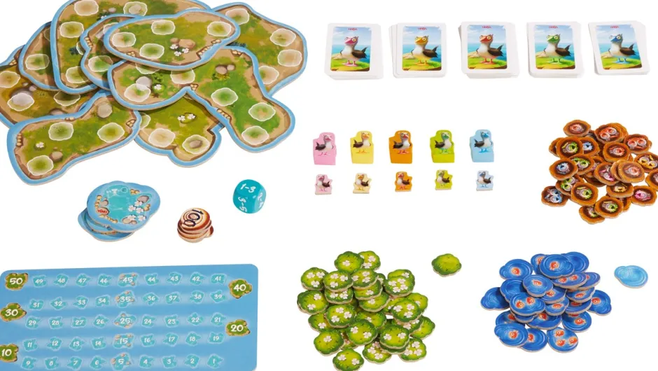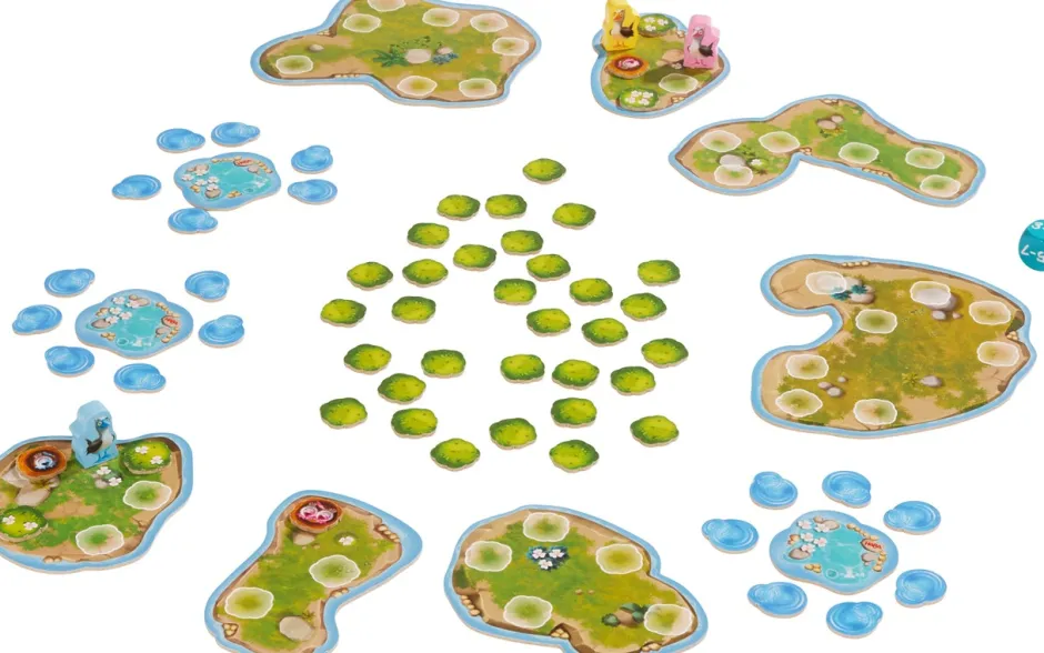 - 27 fichas de agua (5 con 0 peces, 12 con 1 pez, 6 con 2 peces, 4 con 3 peces)