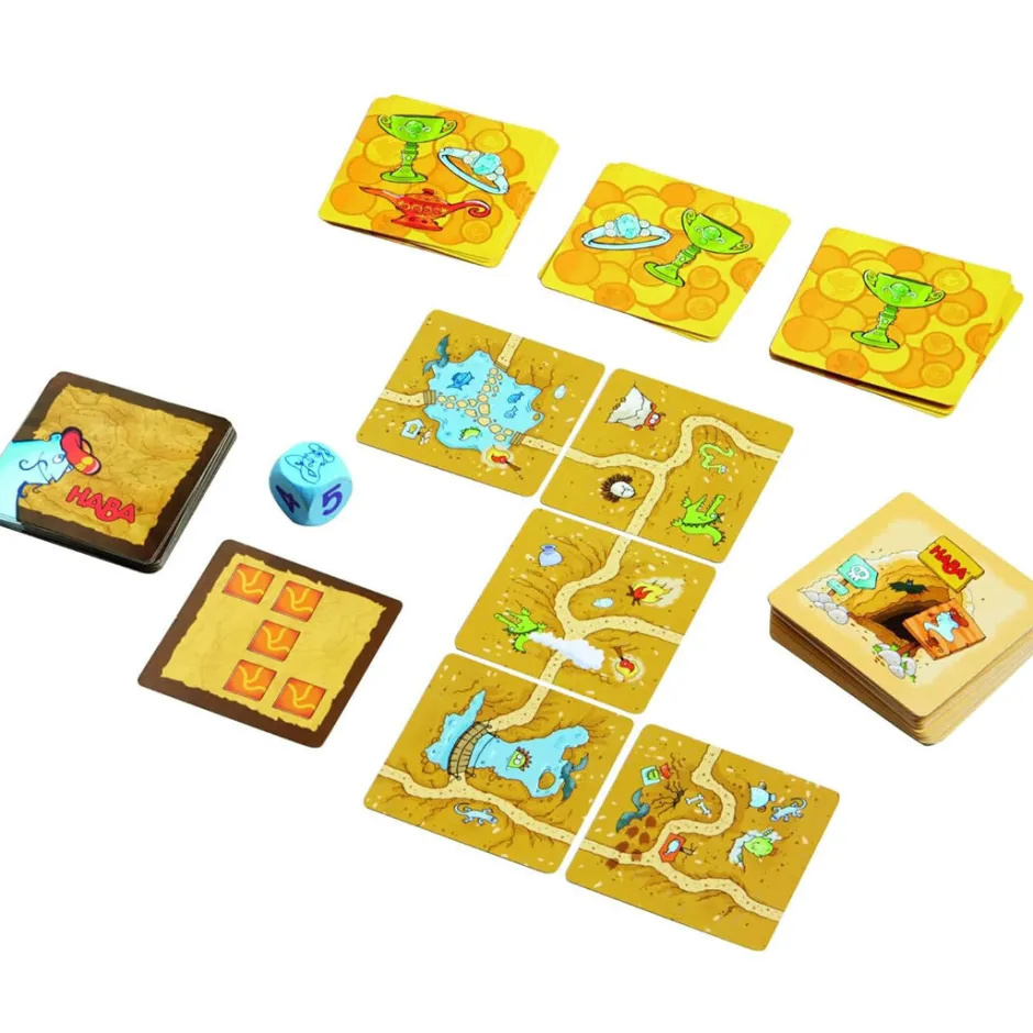 Por turnos iremos lanzando el número. Si nos sale un número cogeremos esa cantidad de cartas de ruta y las llevaremos a nuestra mano. Si sale un genio tendremos que competir por ser el jugador más rápido en colocar las cartas de su mano siguiendo el patrón que muestre una carta de reto, asegurándose de que los caminos encajen perfectamente unos con otros.