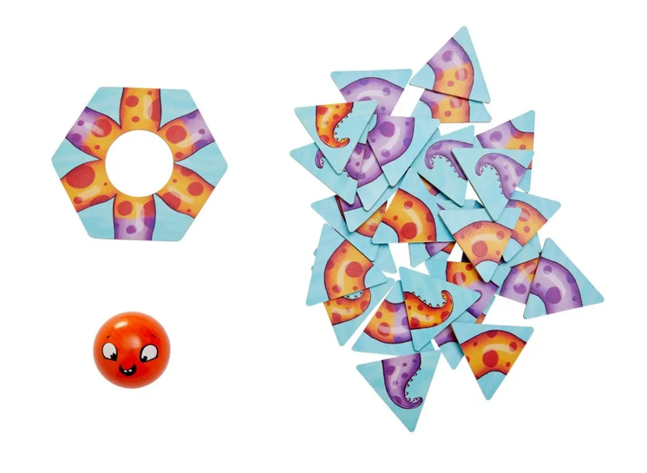 Al principio del juego colocaremos el cuerpo del pulpo en el centro de la mesa y la esfera-cabeza del pulpito sobre ella, orientada hacia una de las patitas.