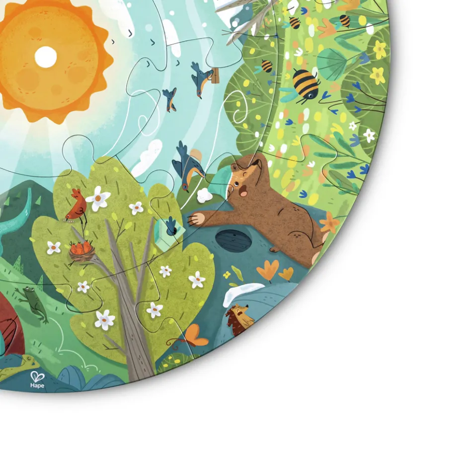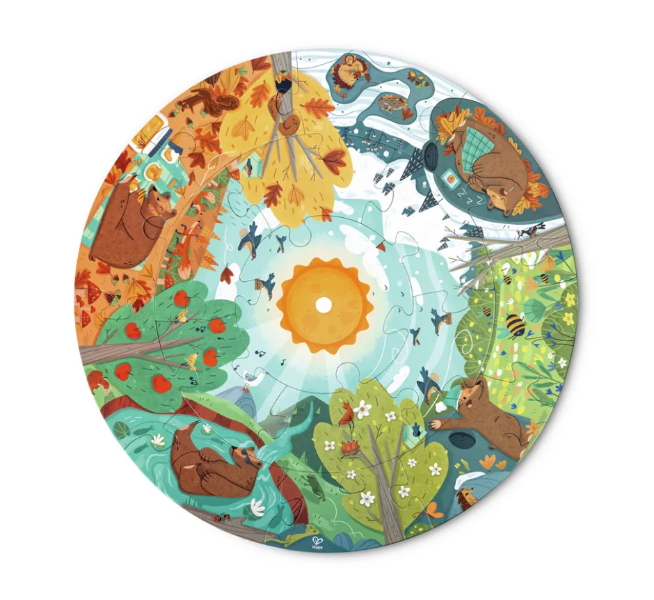 Aprende y descubre las estaciones junto al simpático oso en este increíble puzzle. Con un sol LED y un póster de doble cara, este puzzle de 16 piezas es perfecto para fomentar la imaginación y la curiosidad.
