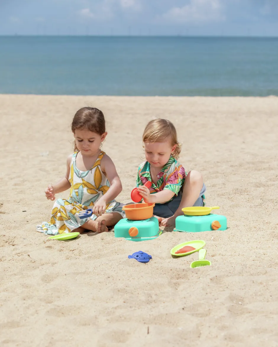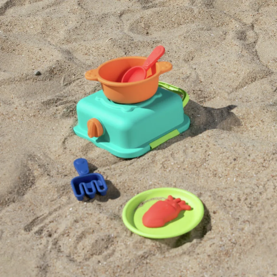 Deja volar la imaginación de tu hijo con este juego de cocina de playa, que incluye utensilios y moldes para recetas hechas con arena. Mejora la motricidad fina y fomenta el juego en grupo, ya que los niños asumen papeles de chefs y anfitriones. Con un montón de accesorios y un asa fácil de transportar, este juego hace que el tiempo de juego en la playa sea creativo y cómodo.