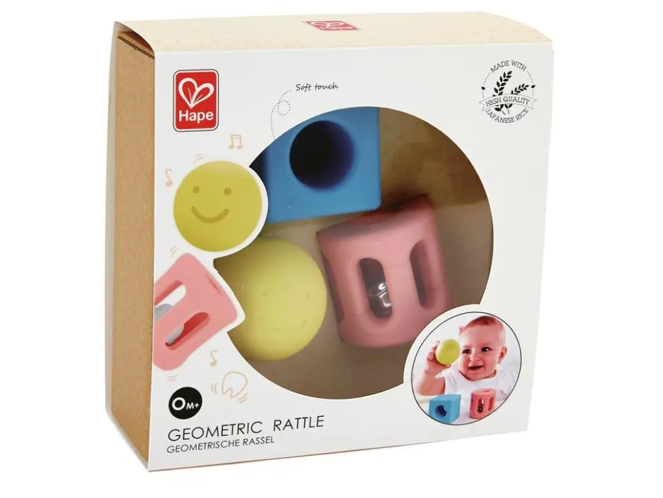 Este sonajero de formas geométricas de colores suaves especialmente diseñado para adaptarse a la perfección a las manitas de los peques. Al sacudirlo y jugar con él, desarrollan capacidades visomotoras y habilidades de coordinación.