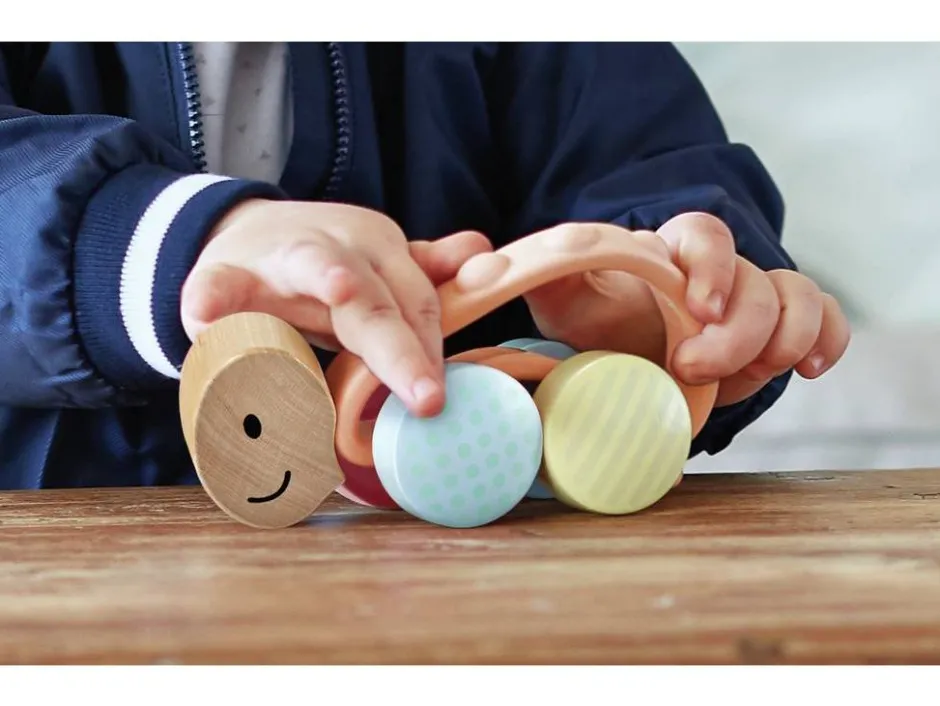 Esta bonita tortuga de madera será la compañera perfecta de los bebés. Ideal para agarrar, arrastrar, morder y para que puedan familiarizarse con los diferentes colores, texturas y formas. Es de madera de diseño minimalista y de colores pastel. No puede ser mas bonita.