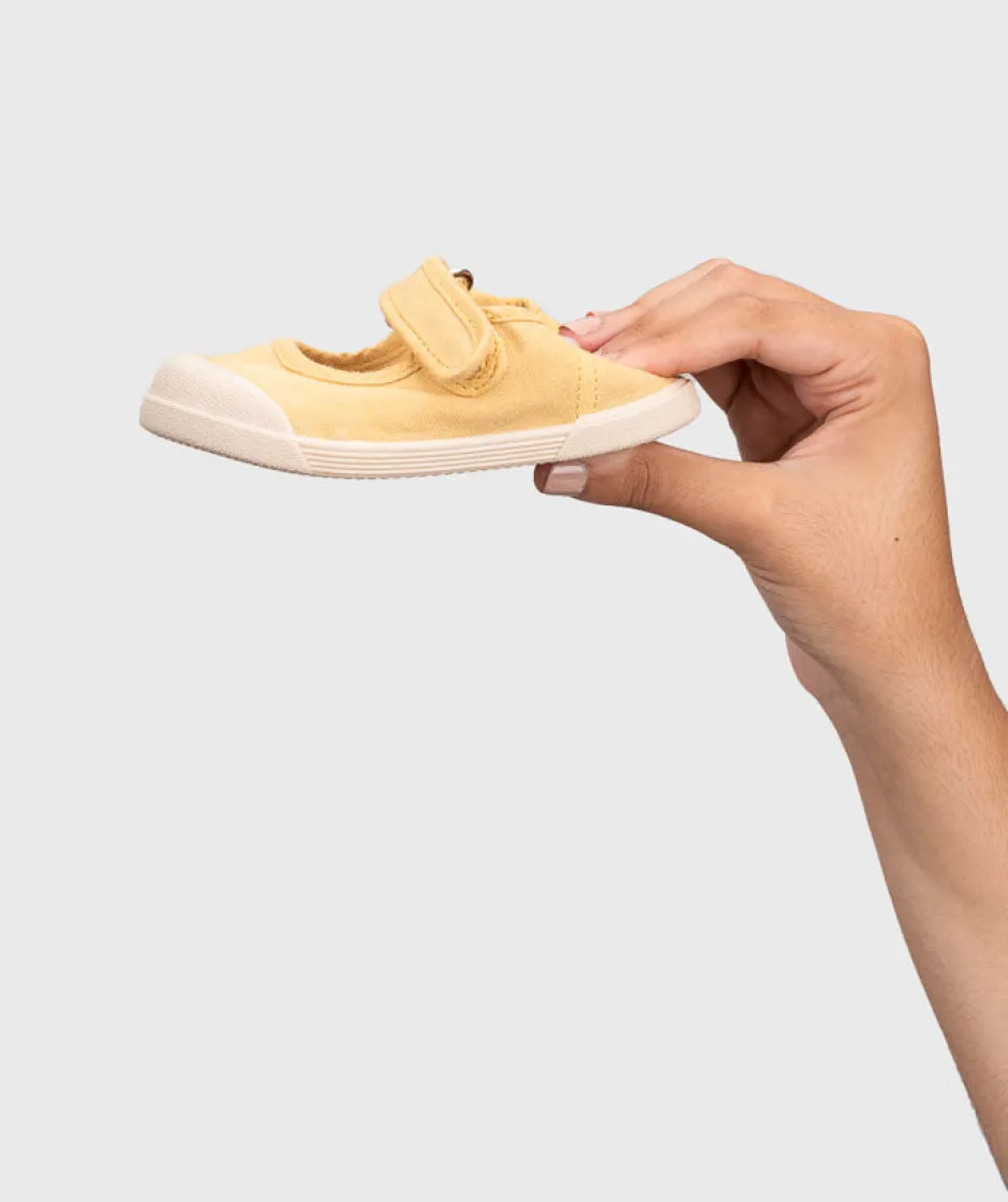 Zapatilla de lona de estilo merceditas 100% algodón, de concepto barefoot, cero drop, flexible, blandita y con plantilla extraíble. Lavar en agua fría no sin antes extraer la plantilla.