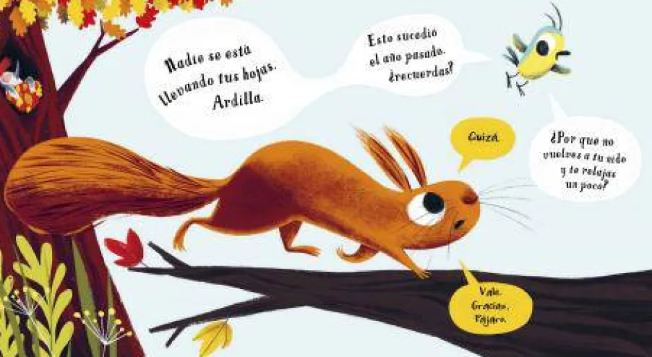 ¡ARDILLA ESTÁ MUY ENFADADA! Ayer había un montón de hojas en su árbol, pero hoy… ¿Dónde están?