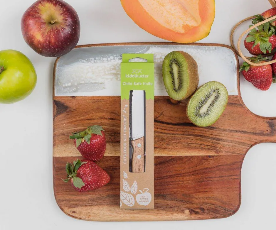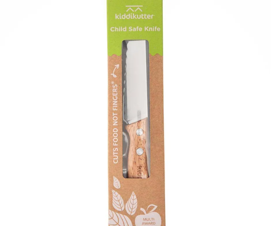Estos cuchillos están diseñados para niños a partir de los 3 años, para que puedan cortar su comida de forma segura. Cortarán cualquier cosa que un cuchillo afilado pueda cortar, pero no les cortará sus deditos debido a las sierras redondeadas de acero inoxidable. Funcionan con la acción de serrado, pero no corta porque no están afilados.