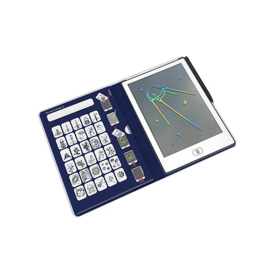 KIDYDRAW-MINI, un libro de dibujo con pantalla LCD que ofrece 30 ilustraciones de calco. Ideal para estimular la creatividad y el aprendizaje independiente, cabe fácilmente en cualquier bolso, permitiéndote crear en cualquier lugar y en cualquier momento.