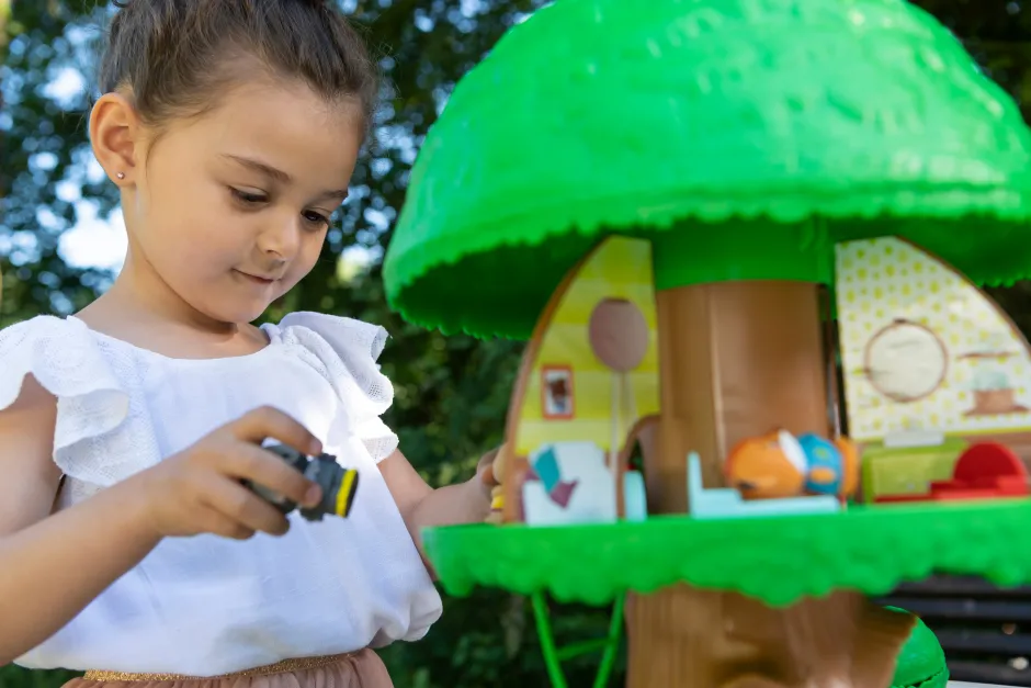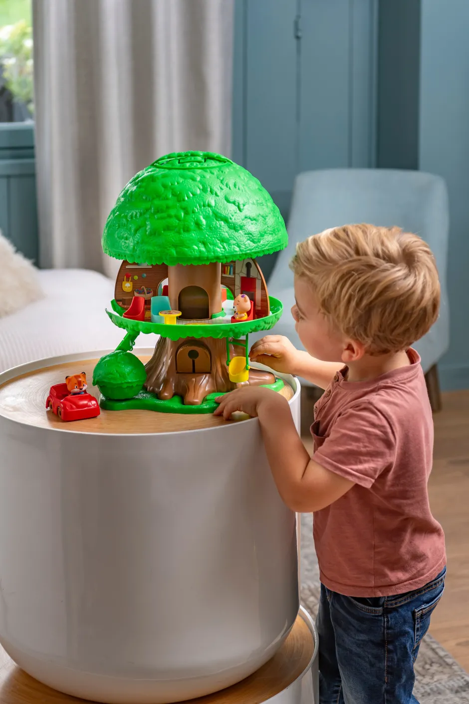 ¡Muchas actividades por descubrir, para representar a los personajes del bosque mágico: una manivela para subir y bajar el ascensor, un arbusto con un espacio de descanso oculto en su interior… Todo para crear muchas historias y jugar juntos!