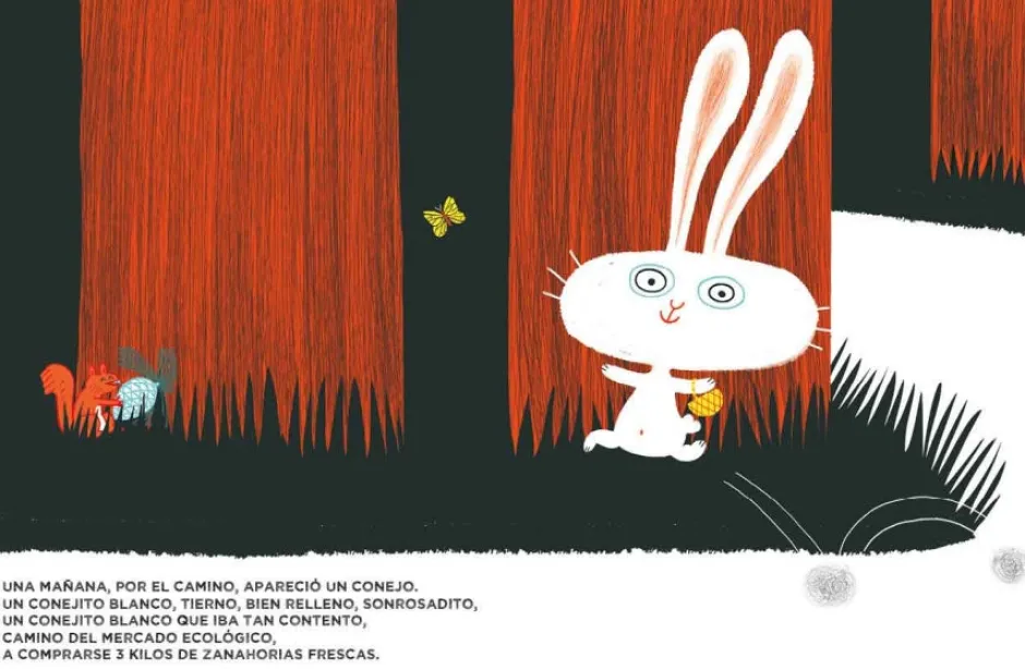 Un lobo malo, hambriento y que habla de una forma rarísima espera en el bosque a que aparezca un delicioso bocado. Con tan mala suerte que se topa con un par de conejitos listos que le quitarán un pelo que tiene en la lengua y, sobre todo… ¡las ganas de comer carne!