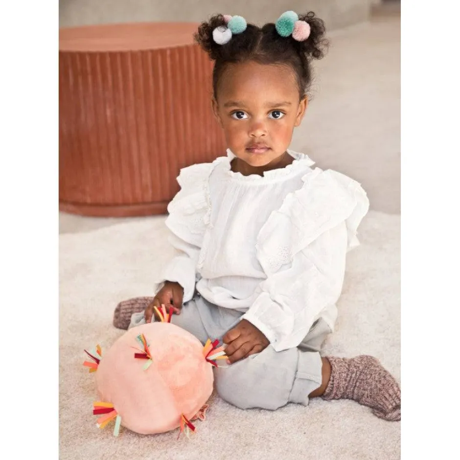 Esta pelota suave y colorida es fácil de manejar para las manitas. Los materiales, los agujeros y los sonidos alegres estimularán los sentidos. Además, los peques podrán utilizar sus habilidades para lanzar o jugar al fútbol con total seguridad