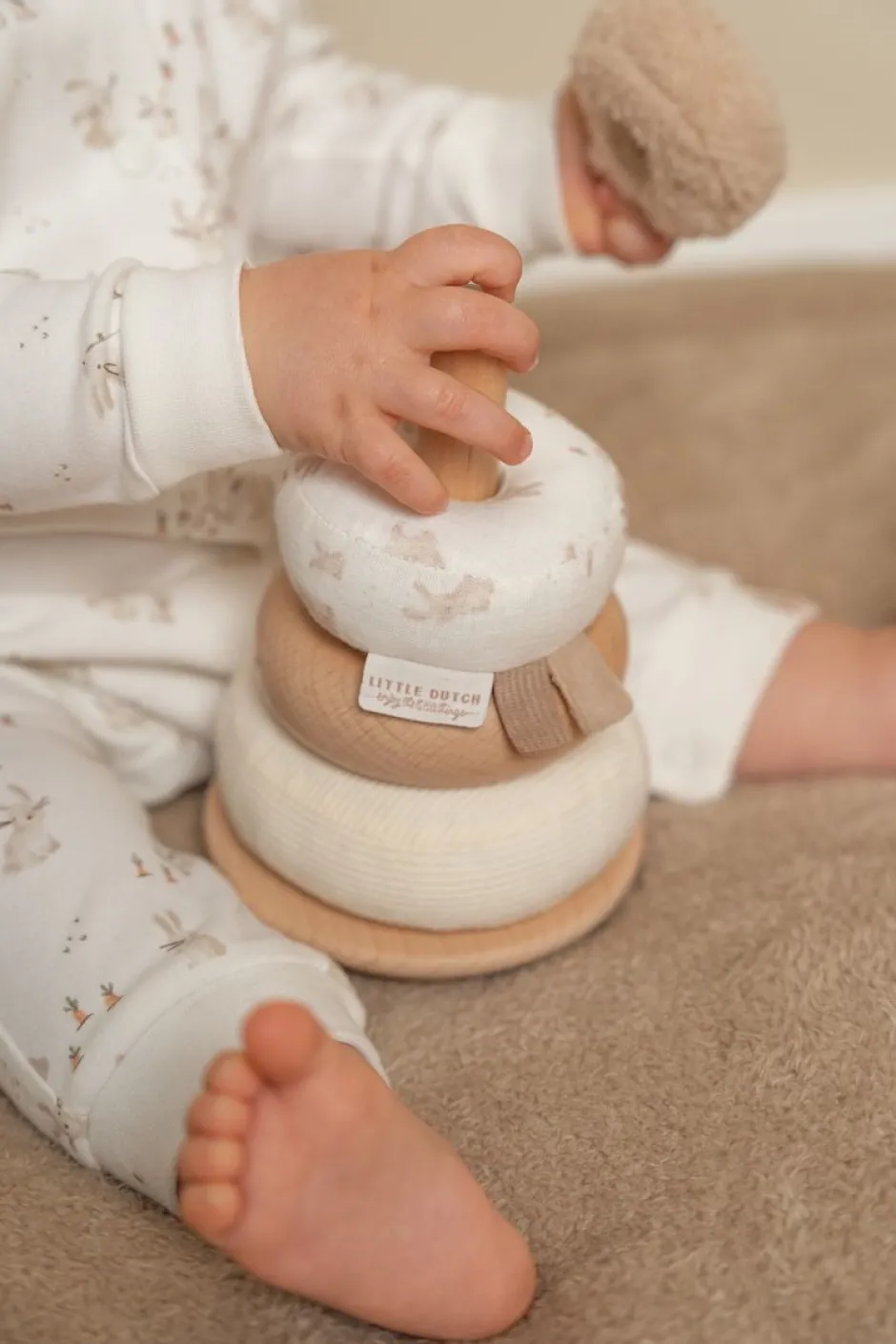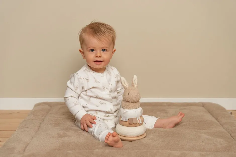 Los anillos apilables de Little Dutch de la colección Baby Bunny está especialmente diseñado para promover la coordinación ojo-mano de los niños mientras disfrutan del juego activo. Se anima a los niños a colocar los anillos de madera y tela en el orden correcto y apilarlos en la pirámide tambaleante. ¡Un desafío divertido para seguir intentándolo!.