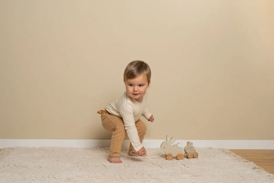 Los conejos de arrastre Little Dutch Baby Bunny son adorables compañeros para tu pequeño. Con un conejo grande y uno más pequeño sujetos con un cordón, proporcionan diversión a la hora de jugar y fomentan las habilidades motoras. Este alegre dúo de la colección Baby Bunny sin duda encantará a los más pequeños durante sus aventuras.?