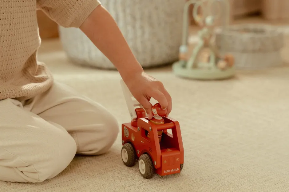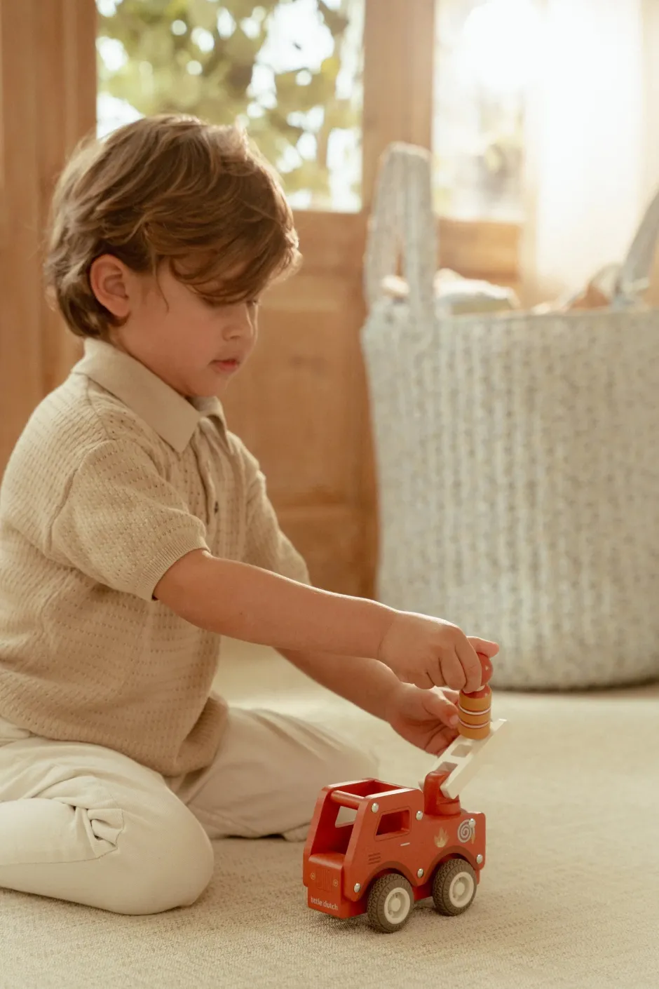 ¡Bomberos listos! Apaga el fuego y salva el día con este robusto camión de bomberos de madera. La escalera móvil facilita cualquier misión de rescate, mientras que las ruedas de goma garantizan un desplazamiento suave. Ayuda a los animales a bajar de los árboles altos y asegúrate de que todos estén a salvo. El set incluye un valiente bombero siempre listo para ayudar. ¡Perfecto para combinar con la estación de bomberos y disfrutar de aún más acción!