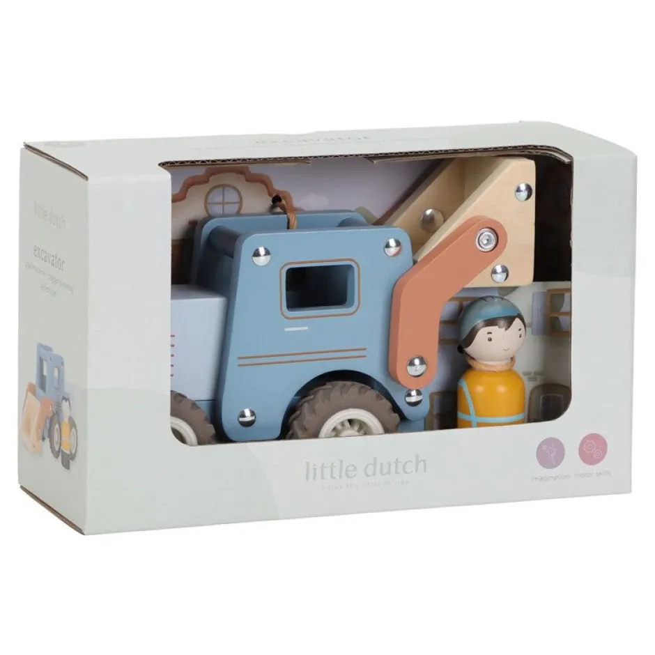 ¡Siempre hay trabajo por hacer en la obra! Con esta excavadora de madera, puedes levantar cargas sin esfuerzo gracias a su pala grande. La robusta miniexcavadora rueda suavemente gracias a sus ruedas de goma e incluye un obrero de la construcción de madera. Ya sea que juegues en interiores o exteriores, esta excavadora de juguete te brindará horas de diversión. Conduce hasta el montón de arena, cava un hoyo profundo y retira toda la arena con la pala grande. ¿Terminaste de cavar? ¡Combina esta excavadora de madera con otros vehículos de construcción para vivir aún más aventuras en la obra!