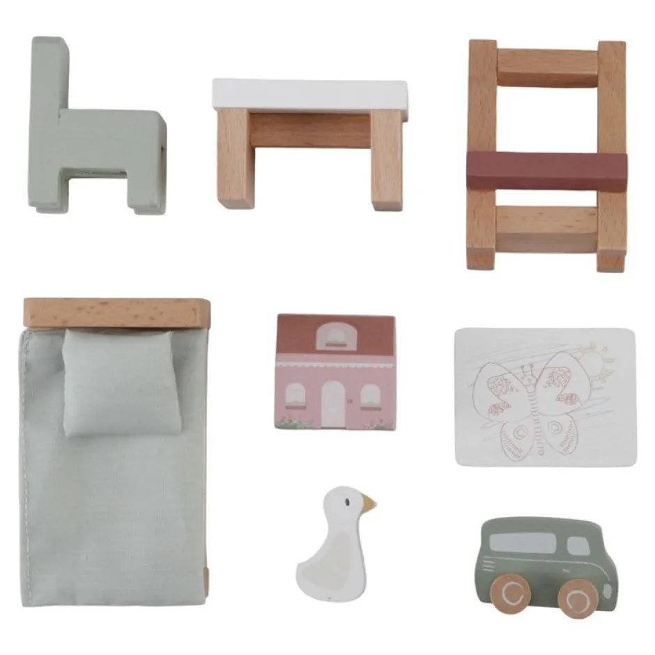 Crea una acogedora habitación infantil en la Casa de muñecas de Little Dutch, con el set de expansión lleno de detalles divertidos! Equipa tu casa de muñecas con una cama cómoda, una mesa con lindas sillas y juguetes para horas de diversión. Agrega una linda mini casa de muñecas para aventuras adicionales y deja que tu creatividad vuele. Convierte cada sesión de juego en un momento mágico!