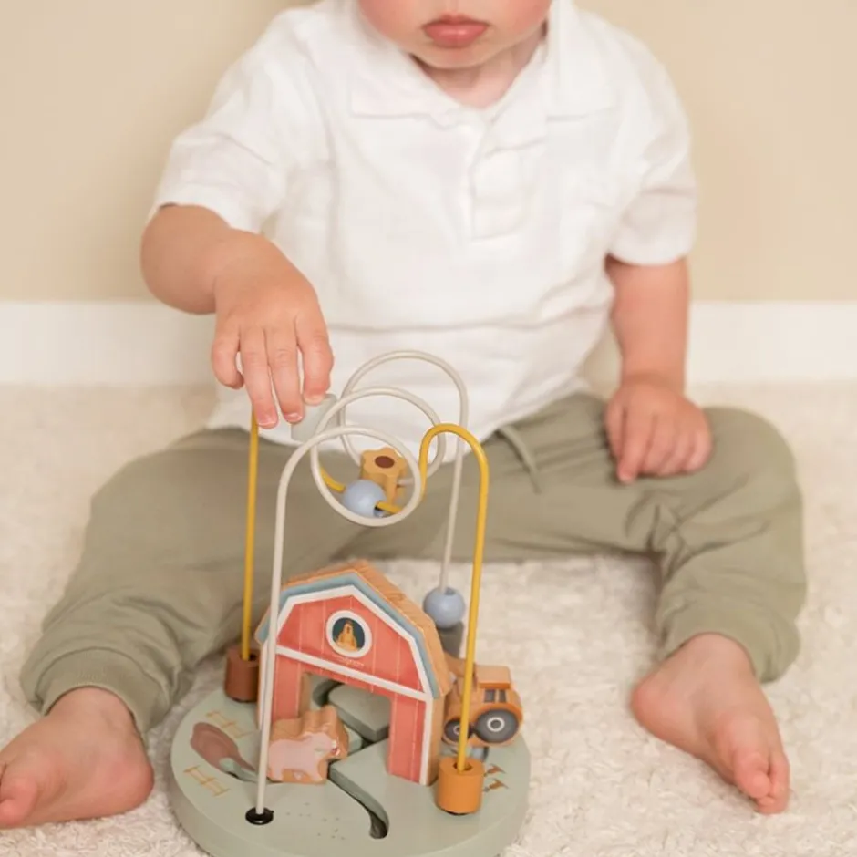 Esta espiral de actividades con cuentas de madera con temática de granja ofrece una actividad educativa para su hijo. ¡Mueve los bloques, la calabaza, los fardos de heno y las ovejas de un lado a otro! La diversión está garantizada.