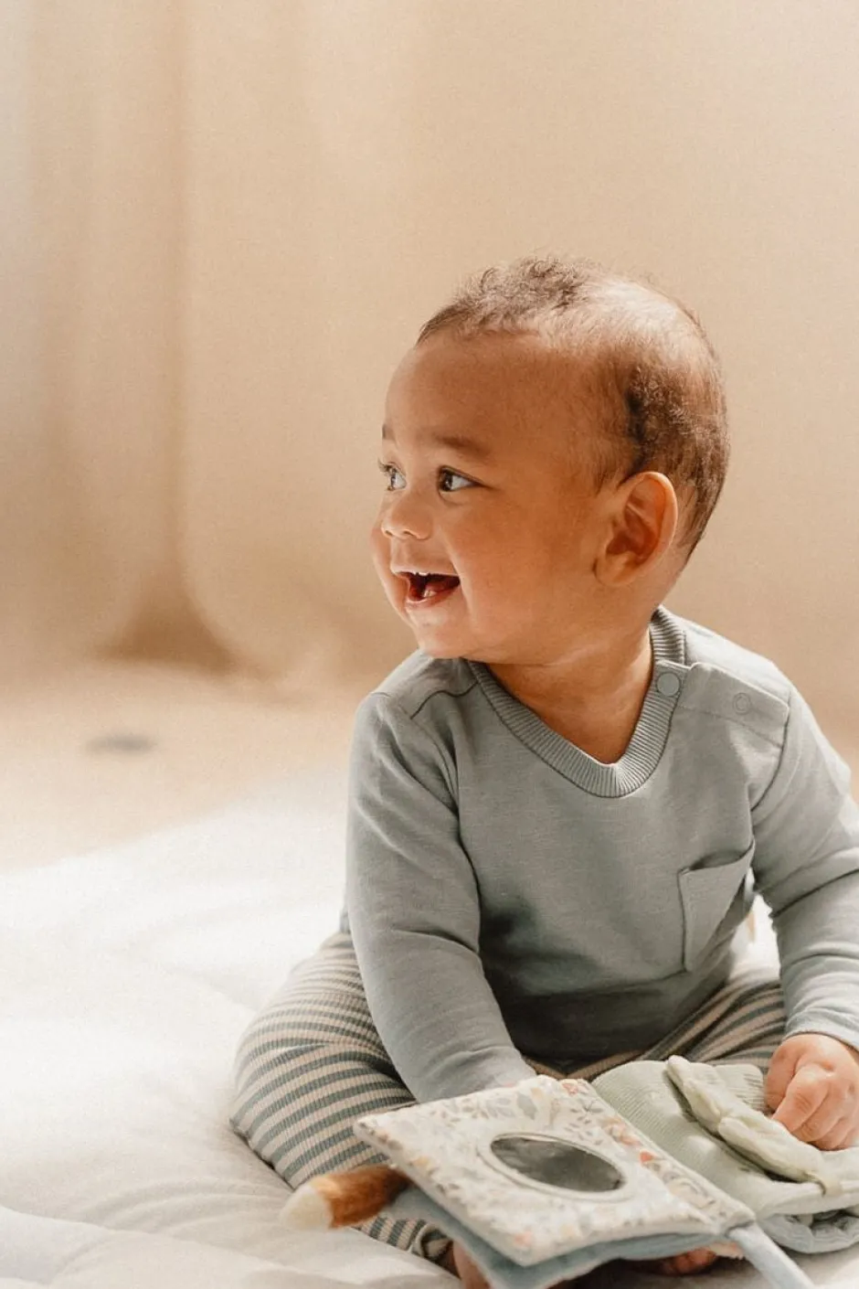 ¡Adéntrate en el encantador mundo de Forest Friends! Este librito para cochecito de bebé para tocar y jugar se convertirá en un compañero preciado cuando salgas con tu pequeño. Este folleto, que incluye etiquetas atractivas, texturas arrugadas y un espejo, está diseñado para cautivar los sentidos de tu hijo página por página. Simplemente coloca el lazo en el cochecito para mantenerlo en su lugar de forma segura durante tus salidas.