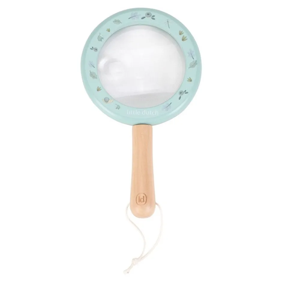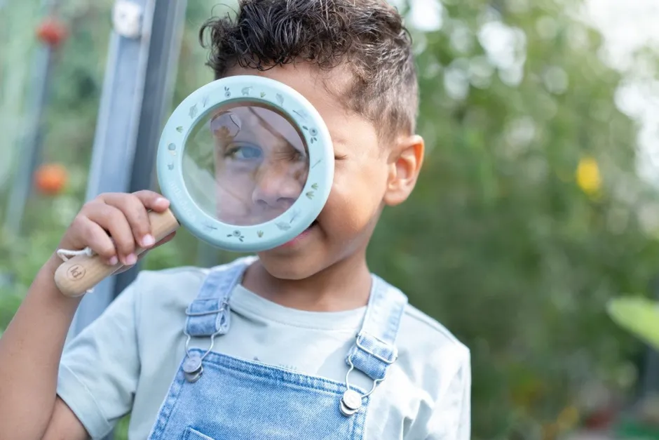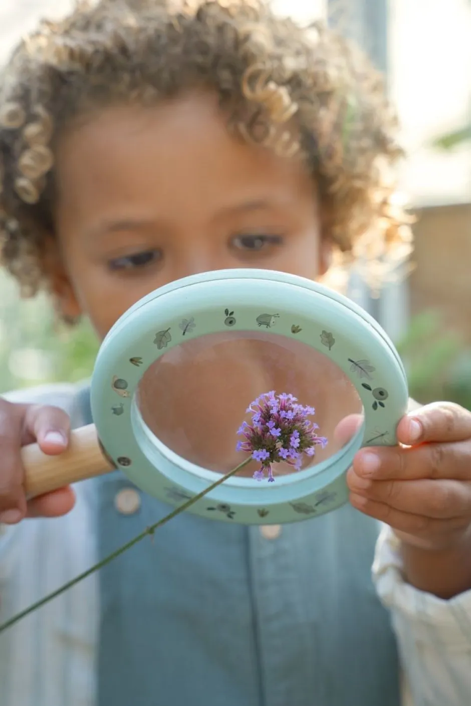 ¡Explora la naturaleza con esta lupa con forma de flor! El resistente marco de madera y el mango garantizan un agarre cómodo, mientras que las bonitas ilustraciones de la temática del jardín de hadas añaden un toque divertido. La lupa cuenta con una lente extra pequeña integrada para una visualización aún más detallada. Con un práctico cordón para colgarla, siempre está al alcance de los exploradores curiosos. Perfecta para los pequeños aventureros que quieren explorar el mundo que los rodea y rastrear pequeñas criaturas