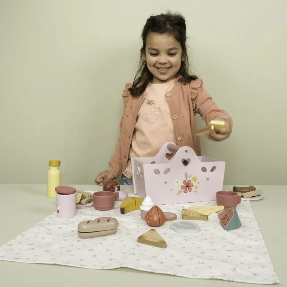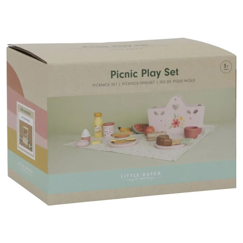 Encuentra tu lugar y deja que comience el picnic. Este juego de picnic de madera de 31 piezas despertará la imaginación de tu pequeño para convertir cualquier momento en un maravilloso picnic. La cesta de picnic de madera está llena de comida deliciosa, 2 juegos de tazas, platos y cubiertos y, por supuesto, una manta para preparar el escenario para el juego de roles.