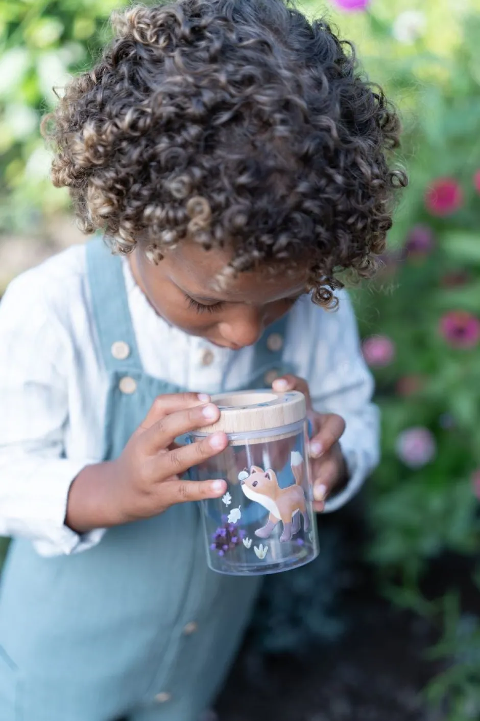 ¡Descubre el mundo de los insectos con este práctico bote para insectos! La tapa de madera, equipada con una lupa, te permite ver los detalles más pequeños con claridad. La tapa se puede quitar fácilmente y el bote está decorado con alegres ilustraciones de Fairy Garden. Se incluye una tarjeta de insectos para marcar todos los insectos. El plástico transparente te permite ver los insectos desde todos los lados, mientras que los orificios de ventilación proporcionan ventilación. ¡Perfecto para niños curiosos que quieren explorar la naturaleza!