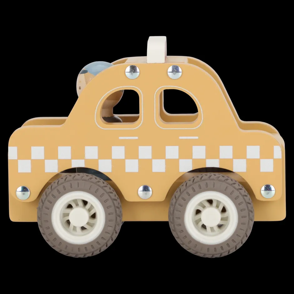 ¡Súbete y disfruta del viaje! Este taxi de madera está listo para llevar a los pasajeros sanos y salvos a su destino. Las ruedas de goma garantizan una conducción suave y el conductor está listo para partir. Recorre la bulliciosa ciudad, detente en la estación de tren y lleva a todos a casa sanos y salvos. ¡Un juguete atemporal! ¿Adónde vas hoy?