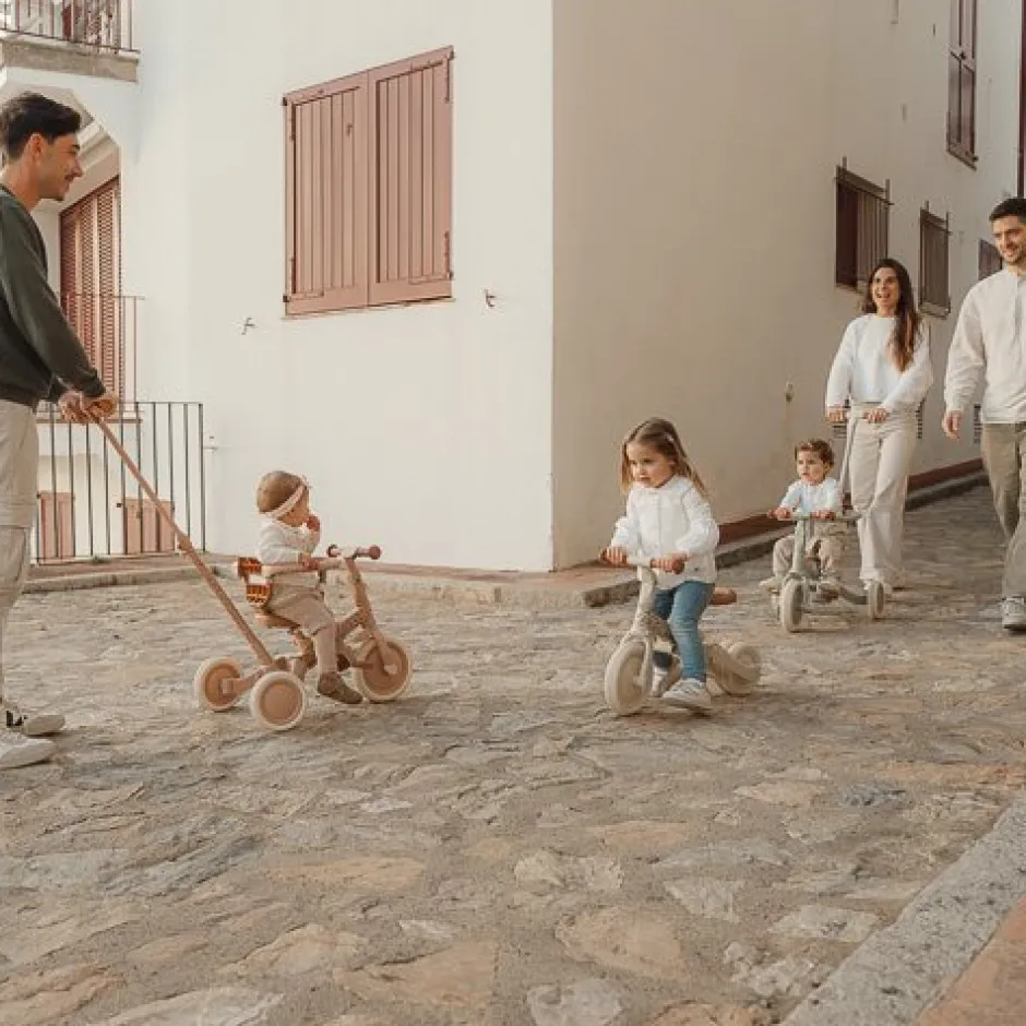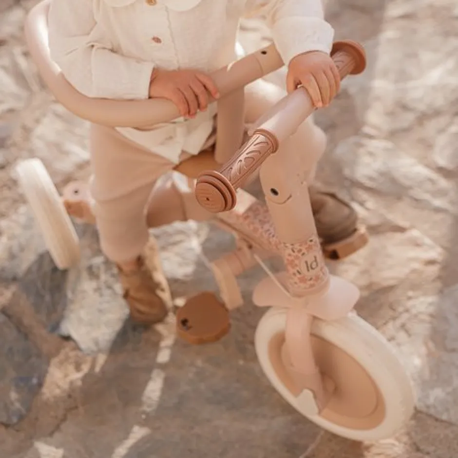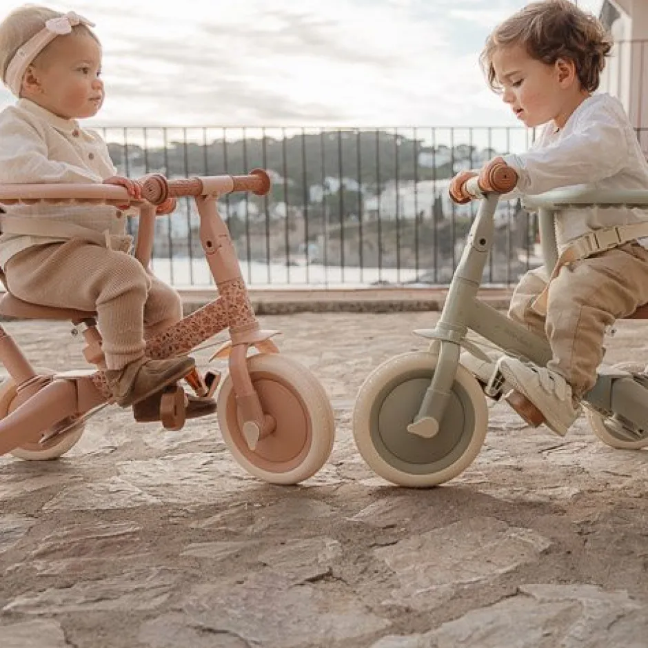 Este modelo es fácil de convertir de un triciclo a una bicicleta de equilibrio al plegar las dos ruedas traseras hacia adentro. Esto hace que la transición a una bicicleta con pedales sea más fácil. Los pedales son fáciles de montar y se almacenan cómodamente en el marco debajo del sillín.
