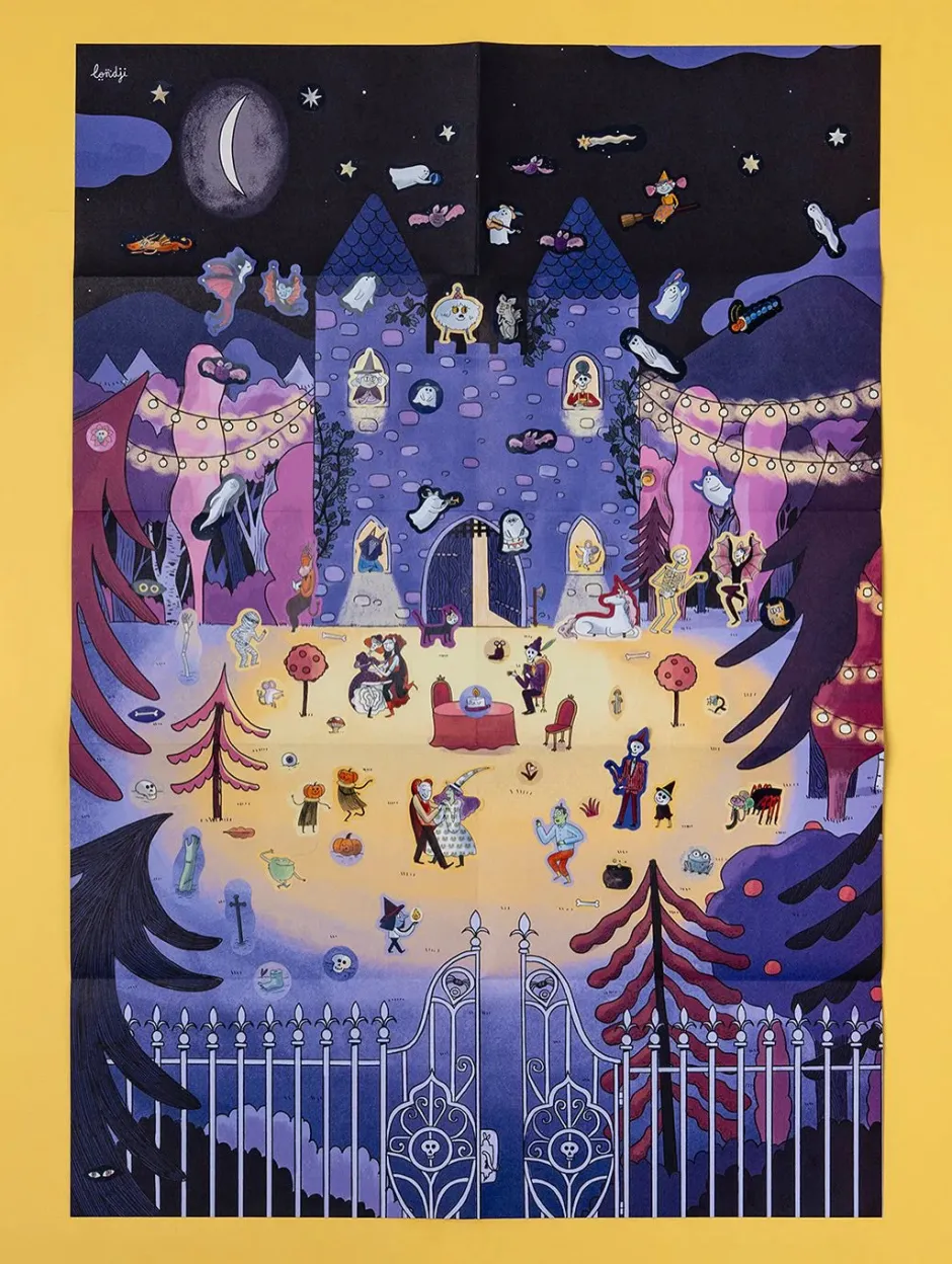Diviértete creando tu propio póster: coloca 152 pegatinas removibles de monstruos y fantasmas, inventa infinitas historias y da vida al castillo encantado con cada detalle. En cada sombra parpadeante se esconde el placer de imaginar un mundo que es solo tuyo.