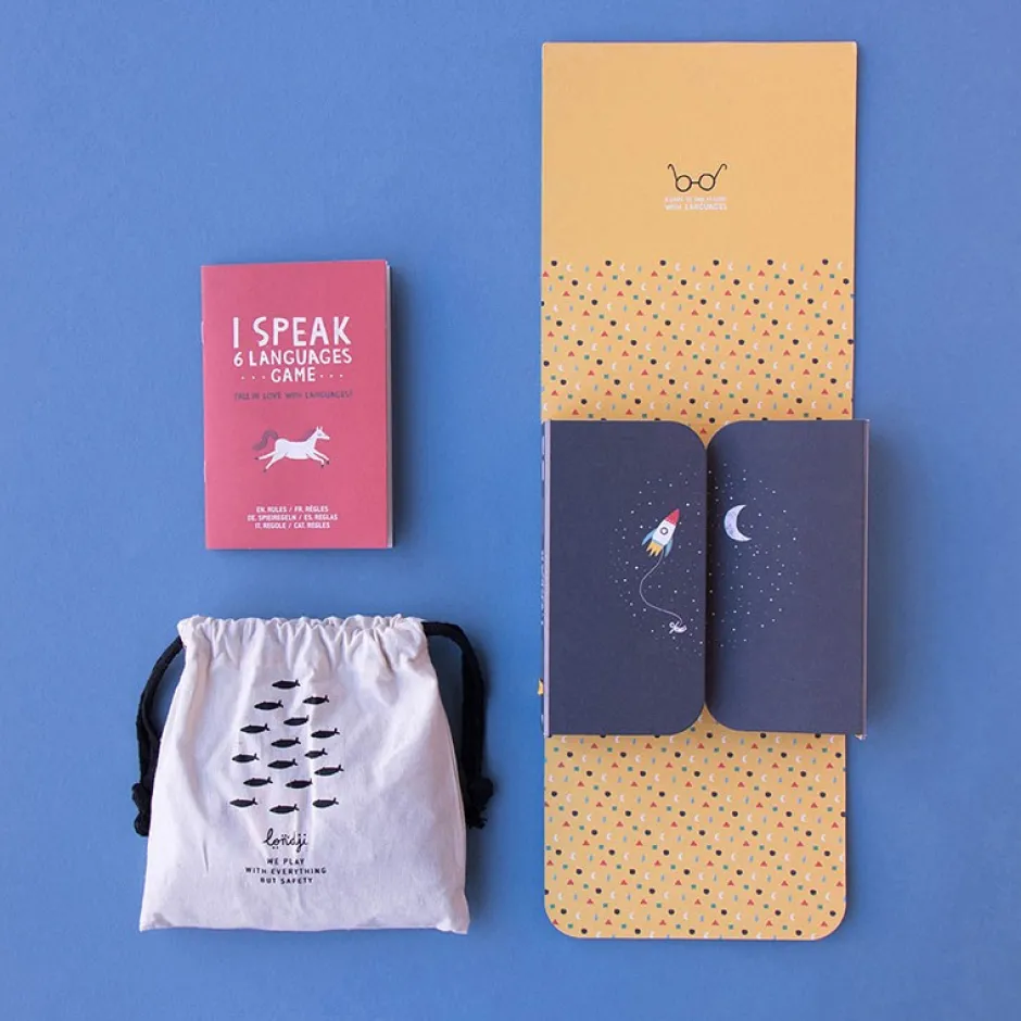 Primero mezclaremos las fichas en la bolsa de algodón y colocaremos en el centro de la mesa las piezas en forma de banderita de los seis idiomas del juego. La dinámica de juego es muy sencilla: El jugador que tiene el turno tira el dado y el jugador de su izquierda saca una ficha de la bolsa. El jugador del turno deberá decir el nombre de la imagen en el idioma que indica el dado, si la sabe gana la ficha. Si no lo sabe, la ficha se colocará sobre la mesa, justo al lado del banderín con el idioma correspondiente. Antes de dejar la pieza, todos los jugadores podrán mirar la solución en el dorso de la ficha y memorizarla. En cada turno el jugador podrá, aparte de jugar la ficha que le toque, repescar las fichas del mismo idioma que queden sobre la mesa, si las recuerda. ¡Ganará el primer jugador en conseguir diez fichas!