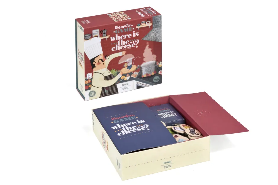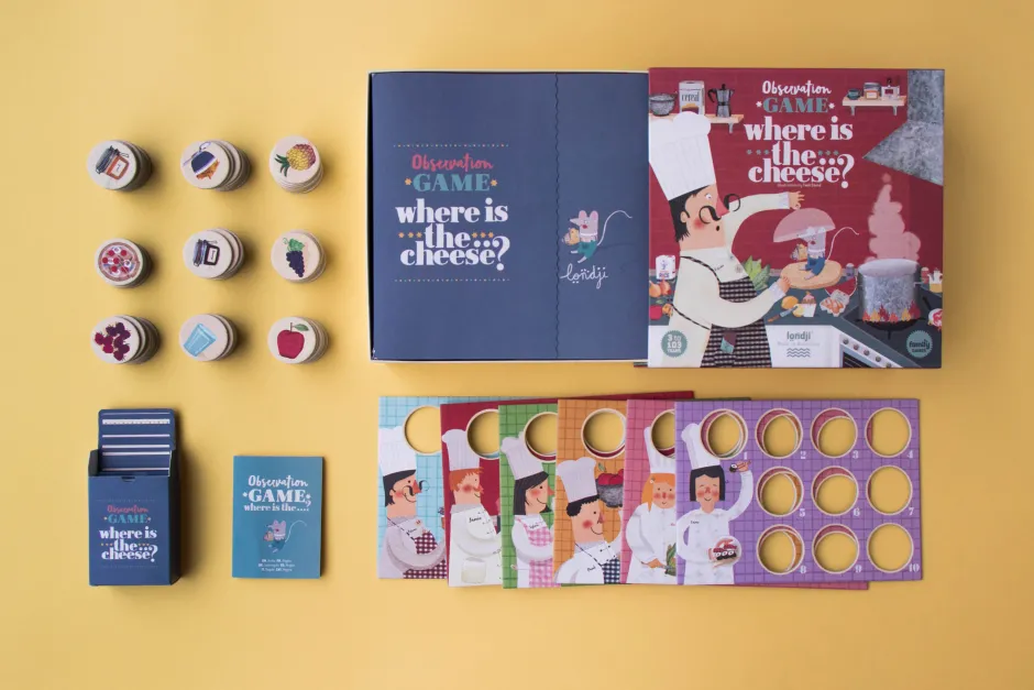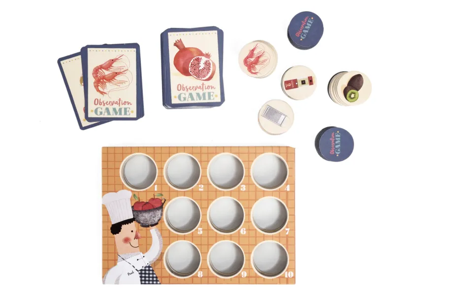 Un juego de observación y rapidez del mundo de la cocina. Un juego para toda la familia, diseñado y fabricado con mucho cariño en Barcelona. A partir de los 3 años.