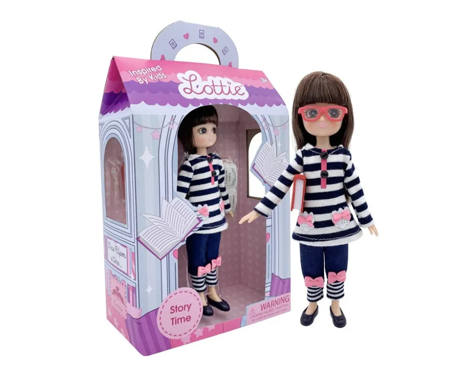 “A Lottie le encanta leerle a los demás. Con un buen cuento antes de dormir, todos tendrán dulces sueños y una noche de descanso. La lectura es una de las actividades favoritas de Lottie, especialmente cuando el tiempo fuera es demasiado frio y desapacible para jugar al aire libre «.