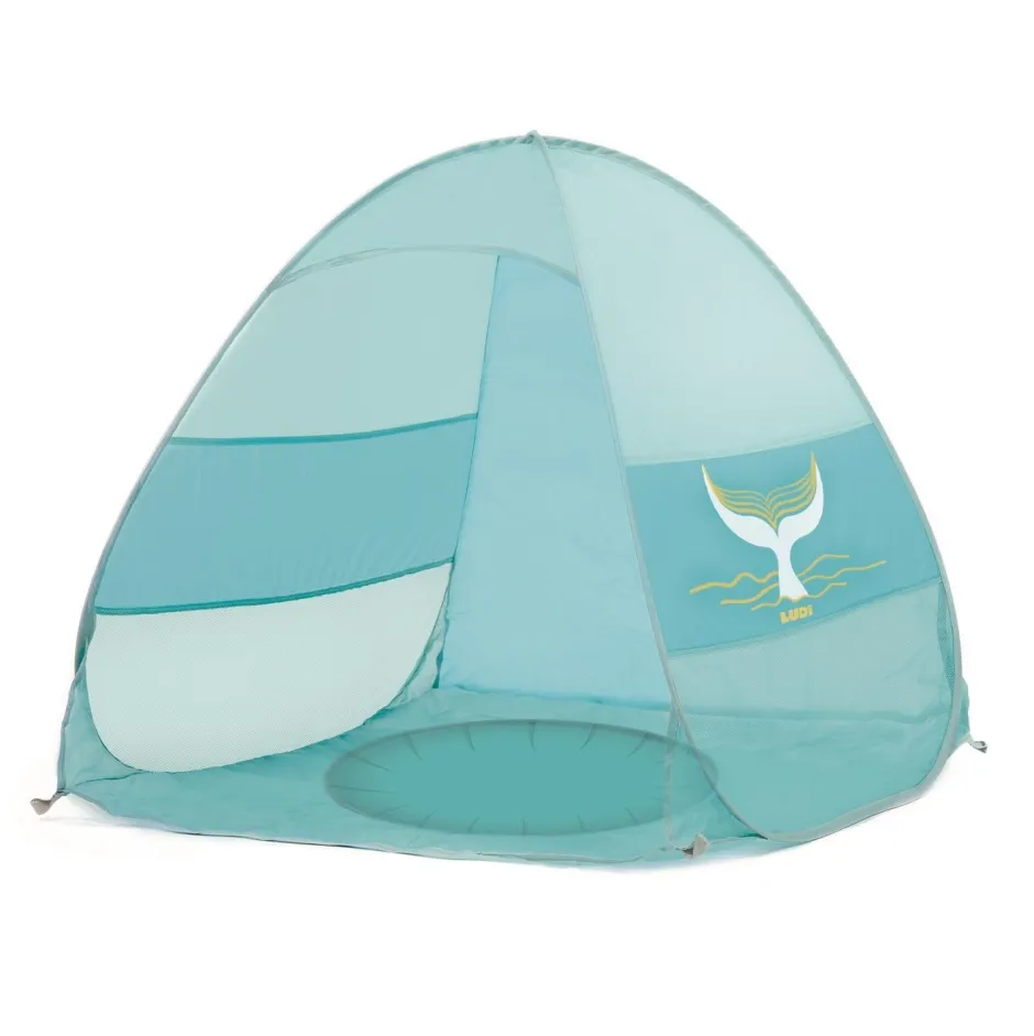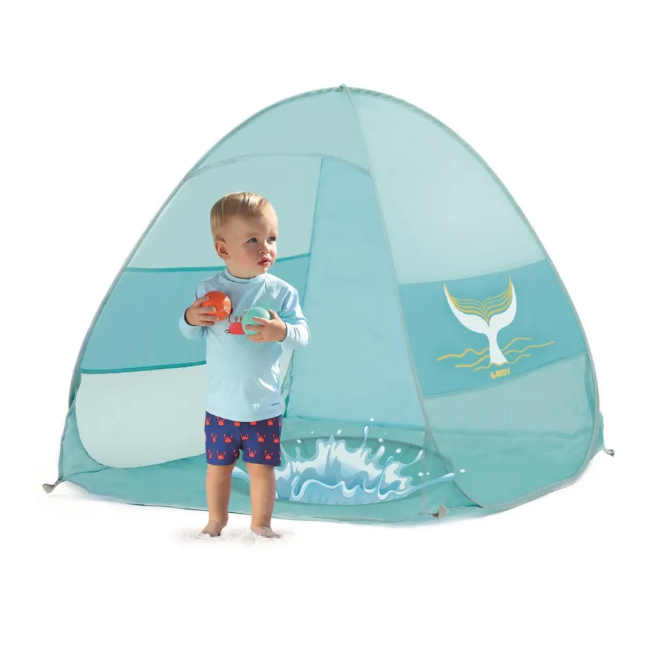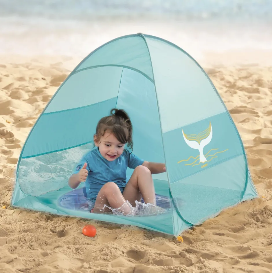 Esta tienda de campaña plegable protege de los rayos del sol, del viento y de las salpicaduras a la vez que integra una pequeña piscina para momentos de refresco. Un espacio de juego práctico y multifuncional