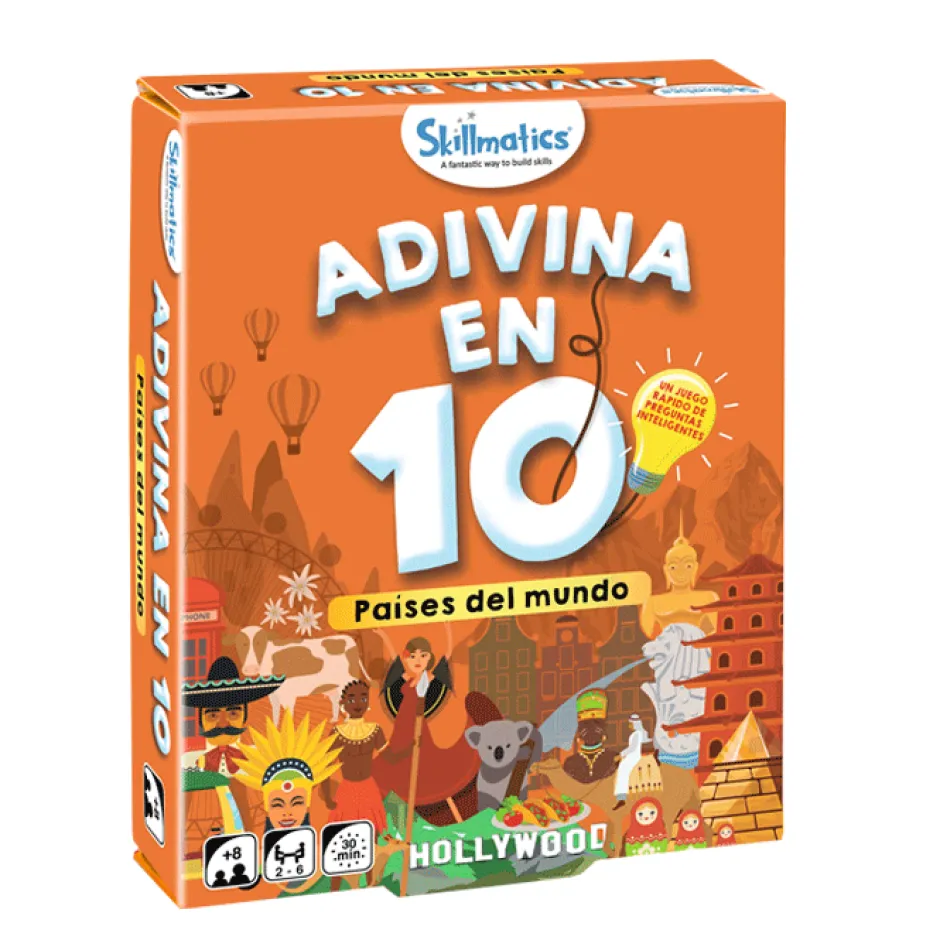 ¡Prepárate para el juego de preguntas más emocionante! Dispones de hasta 10 preguntas para adivinar el país de la Tarjeta de Juego. ¿Es una isla? ¿Está en América del Sur? ¿Su moneda es el Euro? Piensa bien, haz preguntas inteligentes, utiliza las tarjetas de pista y ¡sé el primero en conseguir las 7 tarjetas!
