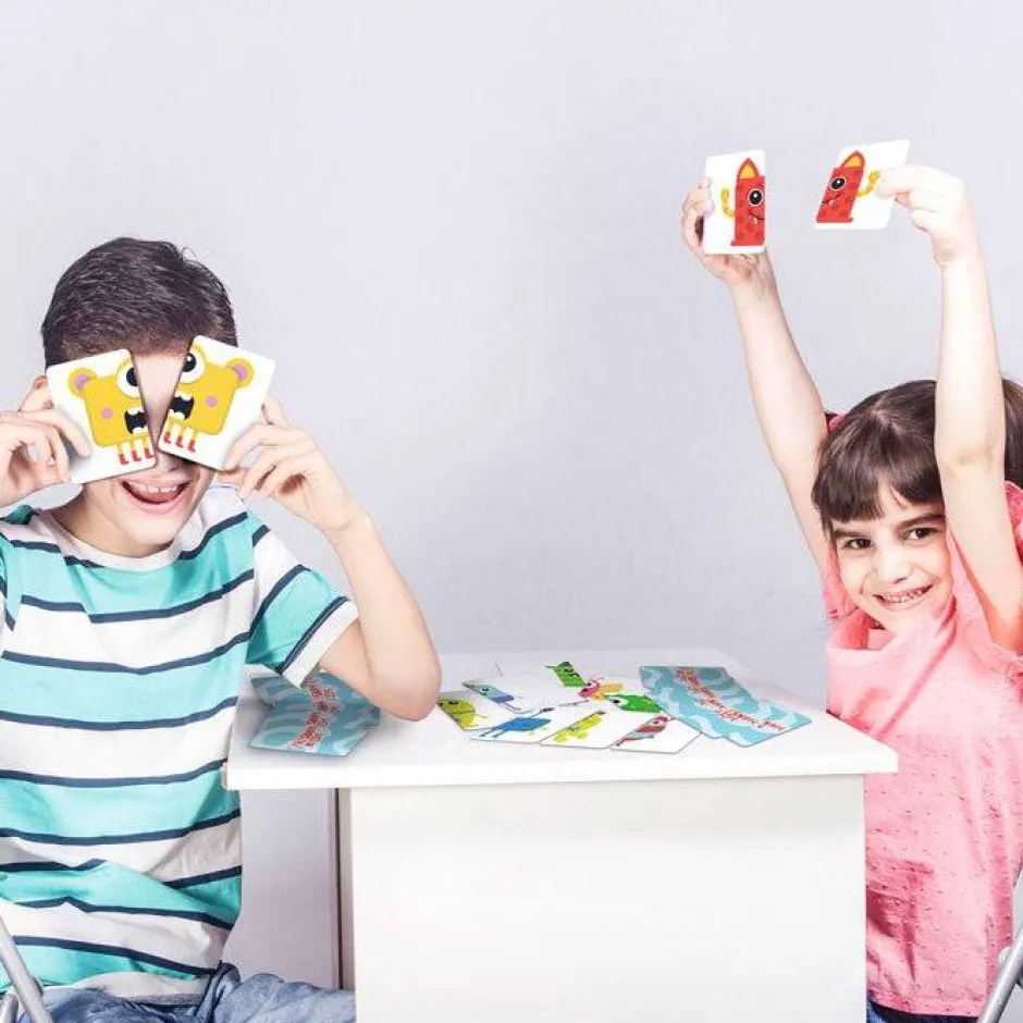 monstruo rojo con alas azules y un ojo? ¿Tienes un monstruo morado con calcetines a rayas y dos ojos? Gana el jugador con más monstruos completos.