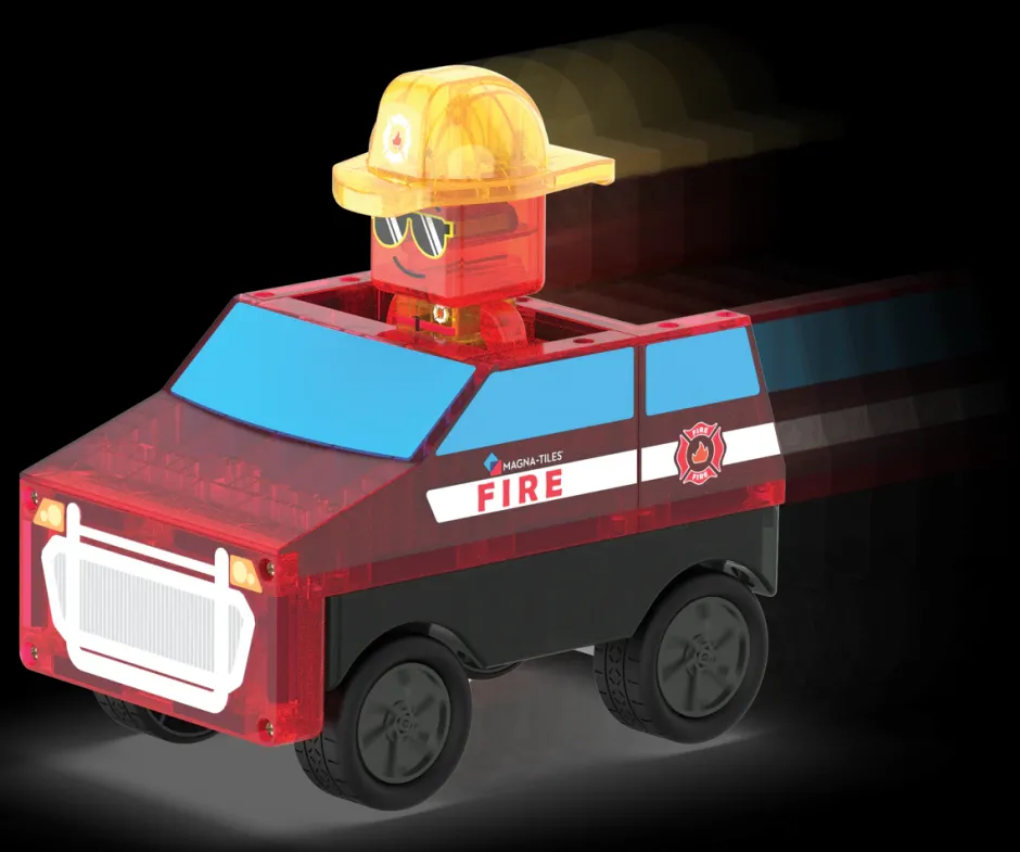 ¡Embárcate en emocionantes misiones de extinción de incendios con MAGNA-TILES Fire Rescue! Envía el coche y la figura del jefe de bomberos a la acción a toda velocidad con el chasis Pullback. Mejora la acción con baldosas de fuego realistas para derribar y escaleras para subir, llegando a cada incendio en el último momento. Diseñado para despertar la creatividad y fomentar el juego imaginativo, MAGNA-TILES Fire Rescue complementa el set Fire Station para operaciones de rescate aún más dramáticas. Juntos, los sets Fire Rescue y Fire Station convierten tu ciudad MAGNA-TILES en un centro de trabajo en equipo, emoción y heroísmo. ¿Quién está listo para responder a la llamada y salvar el día?