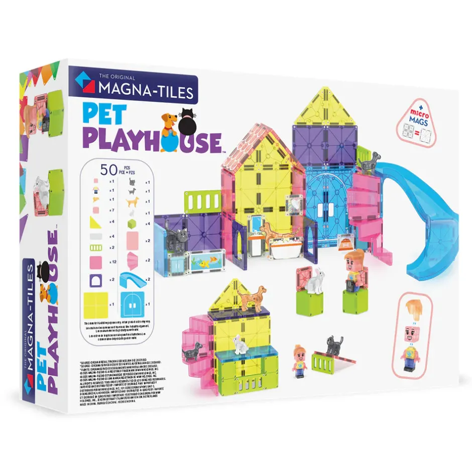 Adéntrate en un mundo donde las mascotas están aquí para jugar y la creatividad no tiene límites. Con la Casita de Juegos para Mascotas MAGNA-TILES, los niños pueden construir el paraíso perfecto para un cachorro juguetón, un gato curioso, un conejito saltarín y su aventurero amigo canino. Abre la puerta doble para una casita de juegos donde tus mascotas treparán por los muebles, se deslizarán por el nuevo tobogán y explorarán un espacio lleno de infinitas posibilidades imaginativas.