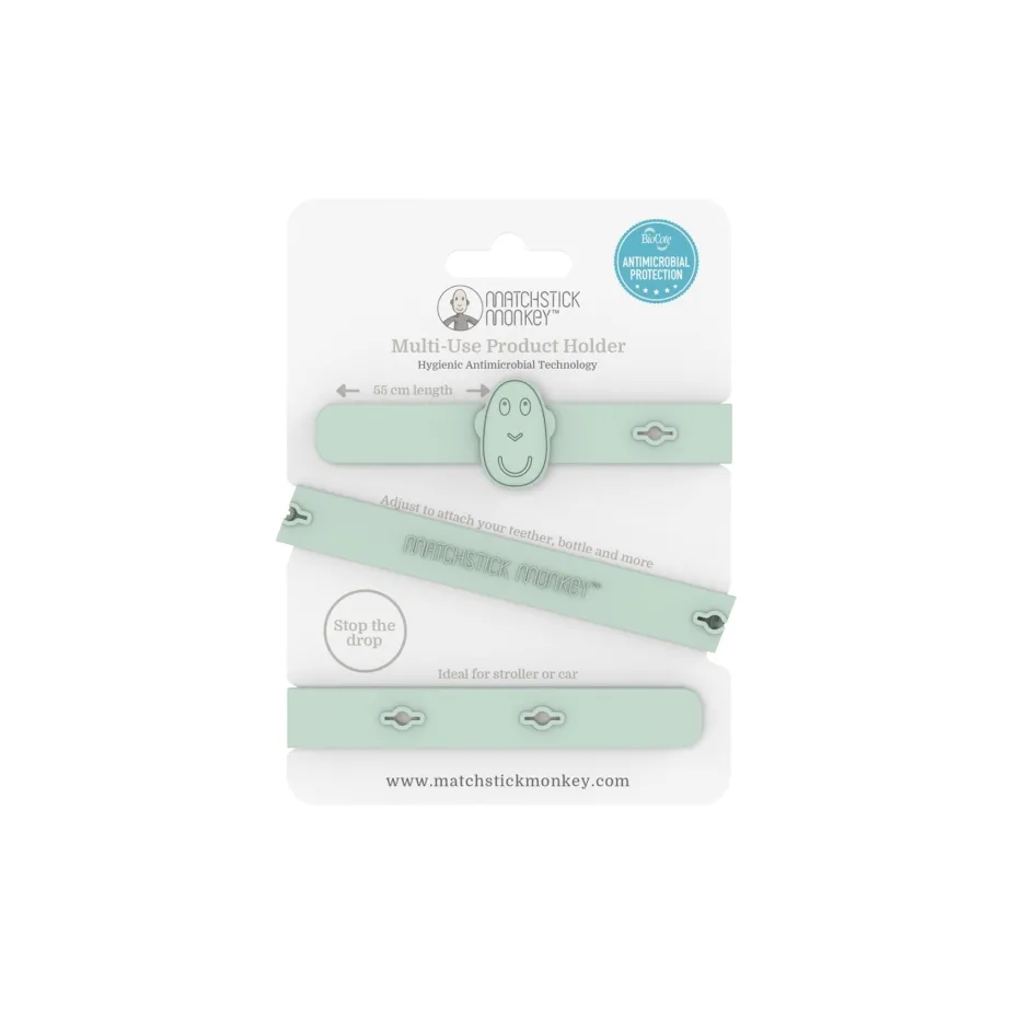 El diseño universal funciona con el chupete favorito de tu bebé, cualquiera de tus mordedores Matchstick Monkey e incluso juguetes pequeños.