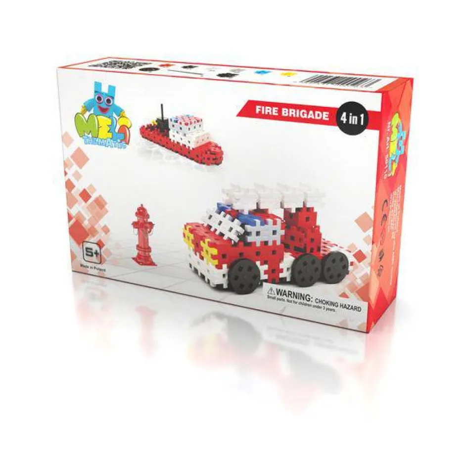 Esta caja contiene 160 piezas variadas para representar 4 vehículos de bomberos.