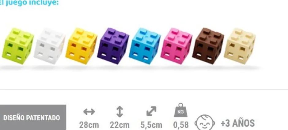 Cada pieza tiene unas dimensiones de 2x2x2cm