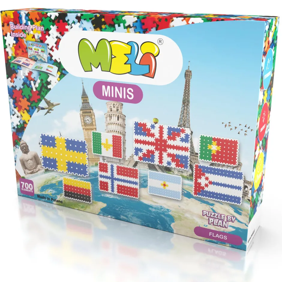 Meli Minis Banderas es nuestro último set de la serie Mini con el que los niños aprenderán de una manera fácil y divertida las banderas de países seleccionados… ¡de todo el mundo!